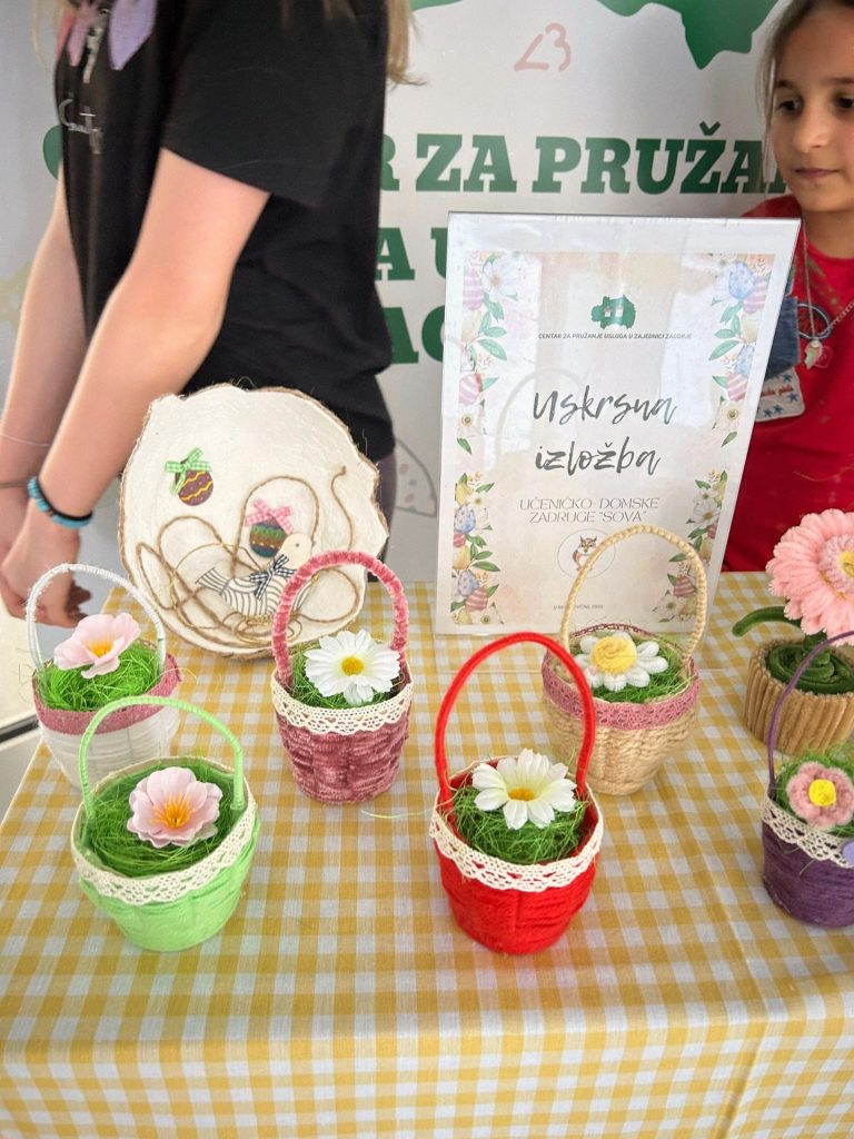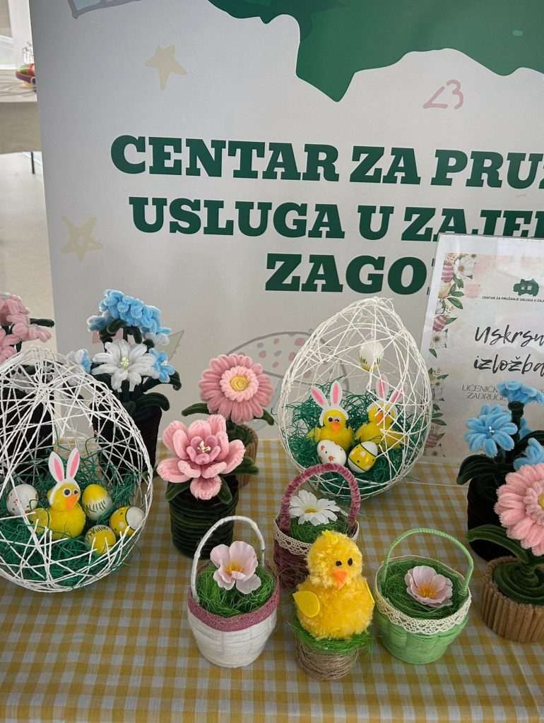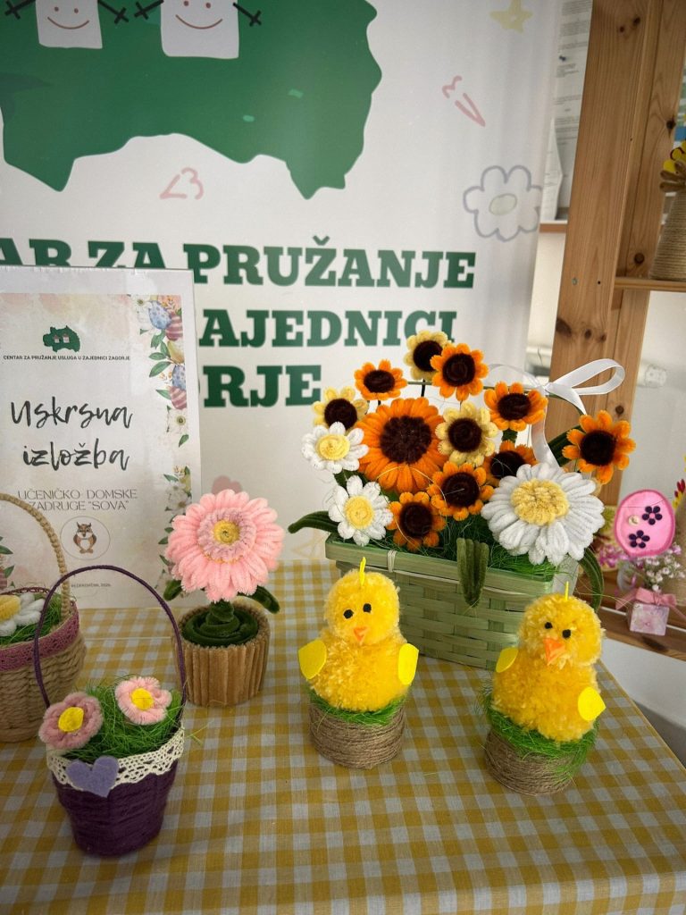 U predvorju Centra Zagorje ovih dana postavljena je uskrsna izložba radova članova Učeničko-domske zadruge Sova. Izloženi su kreativni i maštoviti radovi nastali u našim organiziranim stanovanjima i boravcima, a koji donose dašak proljeća i blagdanskog ozračja u prostor Centra.